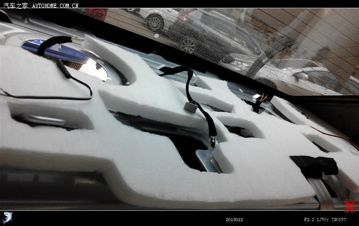 由于原车后喇叭固定只有三个螺丝,和新喇叭眼子不匹配,只好安装两个螺丝,其余两个眼子用扎带绑紧固定。如只用原车喇叭垫圈,在开启后备箱时,拉杆会碰到喇叭缸体。目前暂时还没想好如何解决这个问题,待解决后再更新。由于此环节颇为费事,没有顾上拍照 请大家见谅