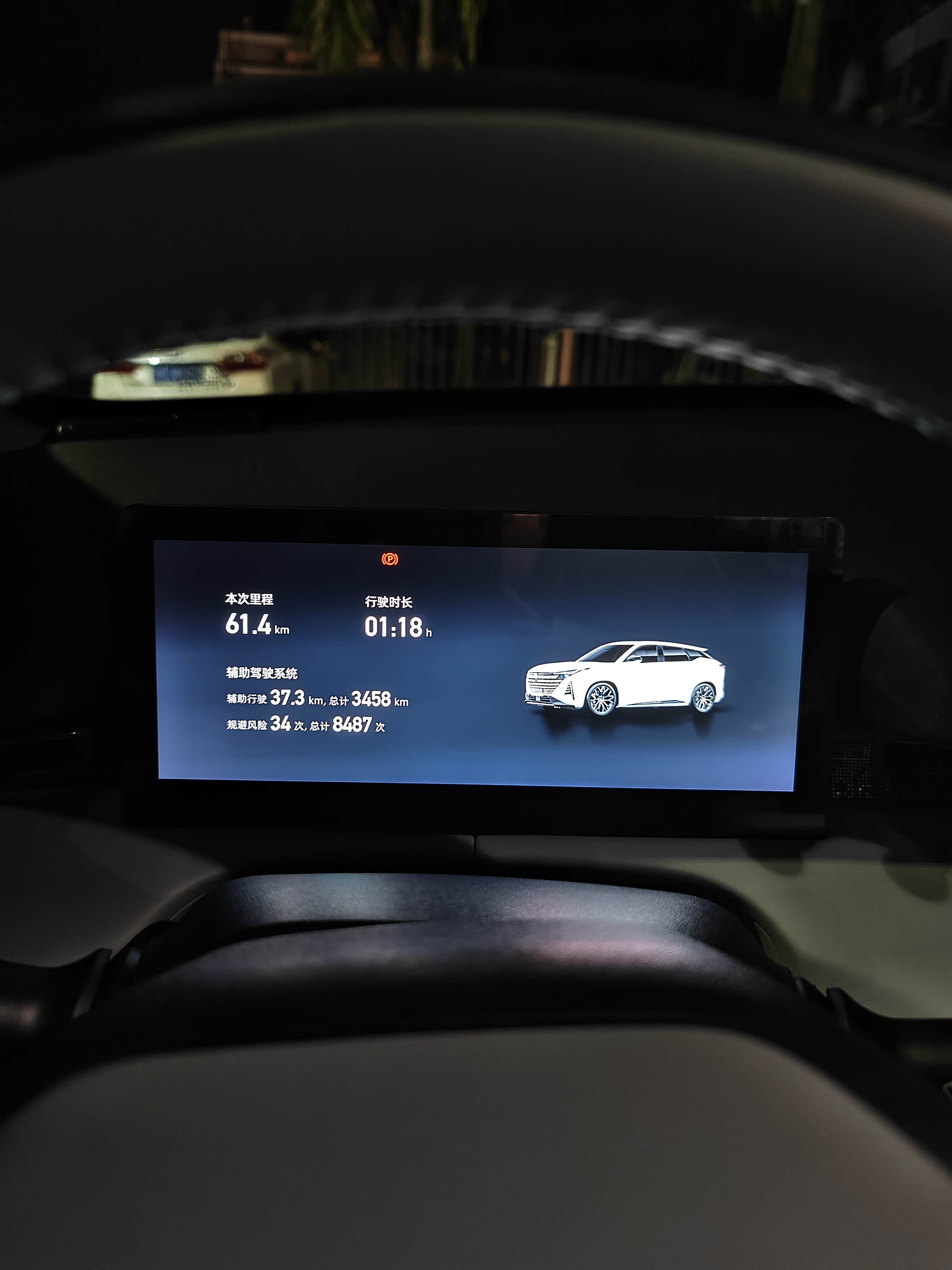 最让我印象深刻的是那次晚上市内高速+快速的测试:纯电模式行驶61.4公里,表显续航仅消耗49公里,续航达成率超100%。这种实实在在的续航表现,让我再也不用为续航焦虑。
