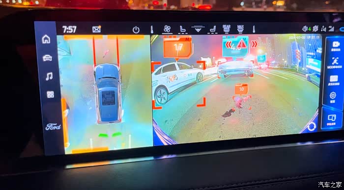 我们反馈给厂家,研发出了CarPlay/hicar+360全景一体机升级版解决方案,配置了索尼4k高清摄像头、华为海思主控芯片、选配256Gb内置SATA固态硬盘录像存储、支持MOD移动物体/行人识别距离,一套组合拳下来,功能可太强大了!我可以设置行驶中360的触发时速,左右转向灯触发、双闪触发、感应到障碍物自动触发,并且能显示障碍物距离,连夜晚地上的水渍都看得清清楚楚。