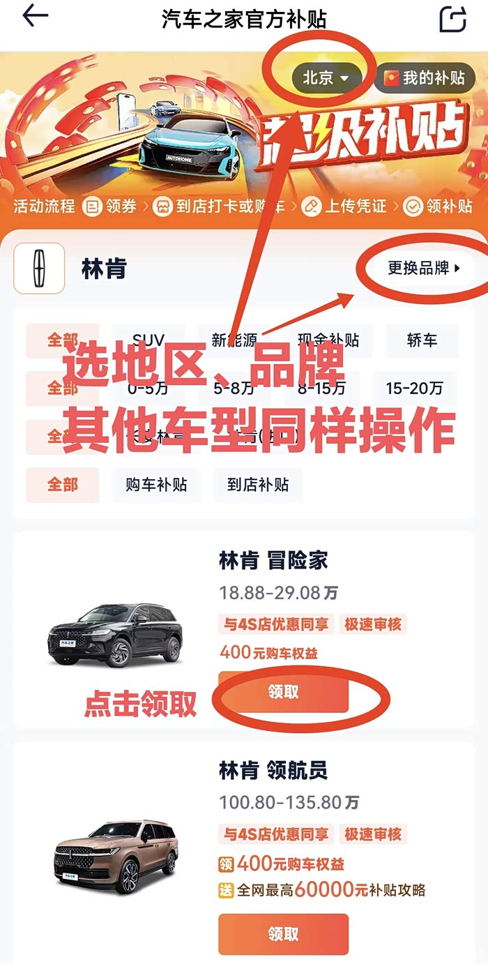 3)提车后传凭证核销补贴(重点!须在去店里购车前领取哦,即:在店里留联系方式等个人信息之前的至少一天领取补贴)