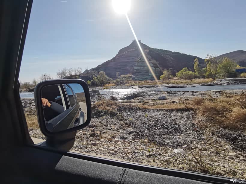 中途有一段上坡路,碎石多、有点滑,我就突然想体验一下低速四驱的感觉。正好上坡路段布满了松动的碎石,可以尝试一下,我停车挂入 N 挡,切换至低速四驱(4L),伴随提示音响起,扭矩被放大 2.64 倍,爬坡变很从容,车轮稳稳的抓住地面,没有丝毫打滑。