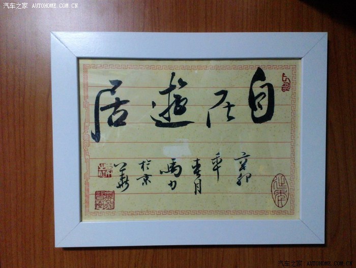 绞尽脑汁为今后的房车洲际旅行确定了一个主题:自在游居。自在,不言自明,如果再深一层的解读就是今后的旅行没有终点,而且不设归期。游居则是把房车理解为一个移动的家。景在变,但家未变。又请北京的好友青年书法家马力先生亲自挥毫泼墨,装裱后挂在车里当作新的人生目标。