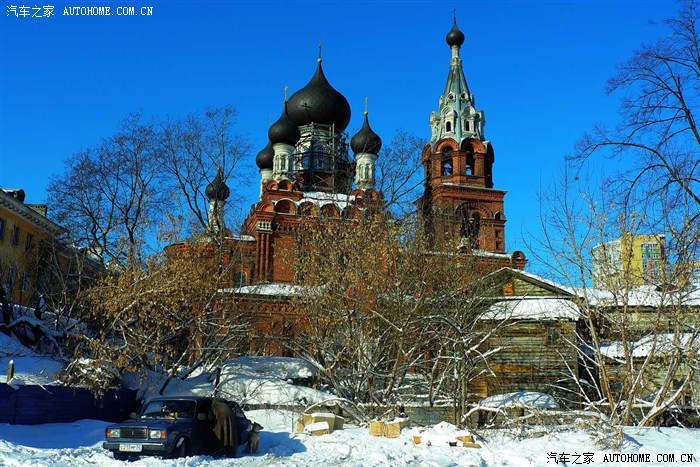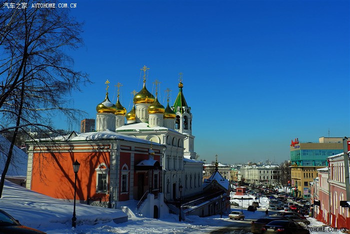 雪后初晴,下诺夫哥罗德城里的东正教堂在蓝天的映照下显得格外的圣洁和庄严。