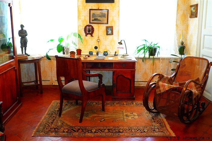 参观的这处高尔基博物馆曾经是高尔基在20世纪初居住的住所,这幢木制结构的小木屋坐落在城区内一块安静的居民区内,显得并不起眼,斑驳的木制纹路记载着它的古老和沧桑,惟一特别的是外墙上一块雕有高尔基头像的石刻,才使得这幢楼有所不同。博物馆内的所有摆设都还原成了当时的真实情况。