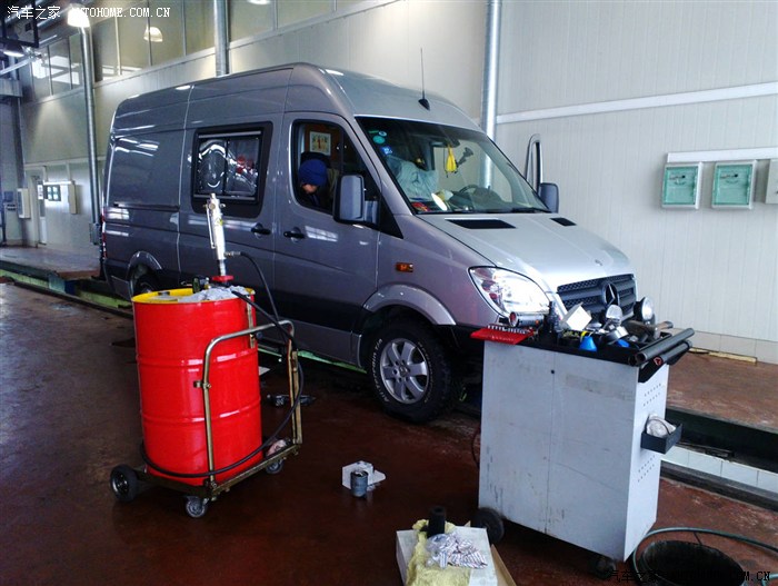 更换完吊脚轴承后,又开始更换机油。在俄罗斯奔驰凌特一次保养需更换约11升机油,而国内首保时只加了9升机油,怪不得出门不久机油指示灯就亮了起来。