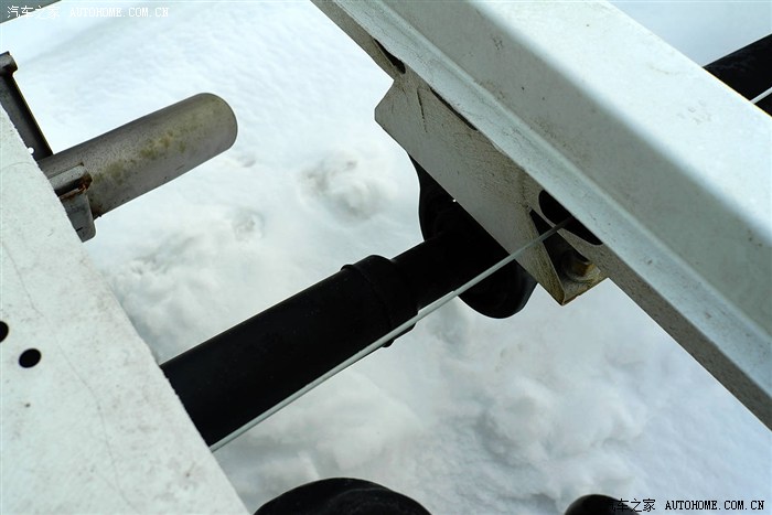 更换传动轴的吊脚轴承。专门在室外拍了一辆奔驰货车底盘的吊脚轴承位置。