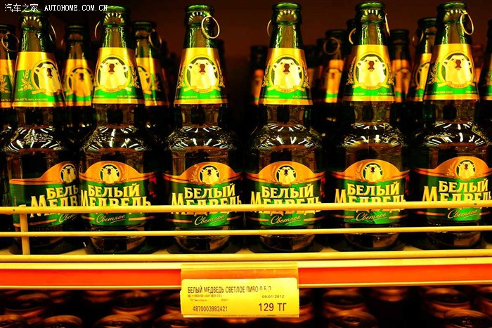 逛一下连锁超市,当地很畅销的一个啤酒品牌,在哈萨克斯坦和俄罗斯都能买到。也有青岛啤酒出售,只是价格要贵很多。