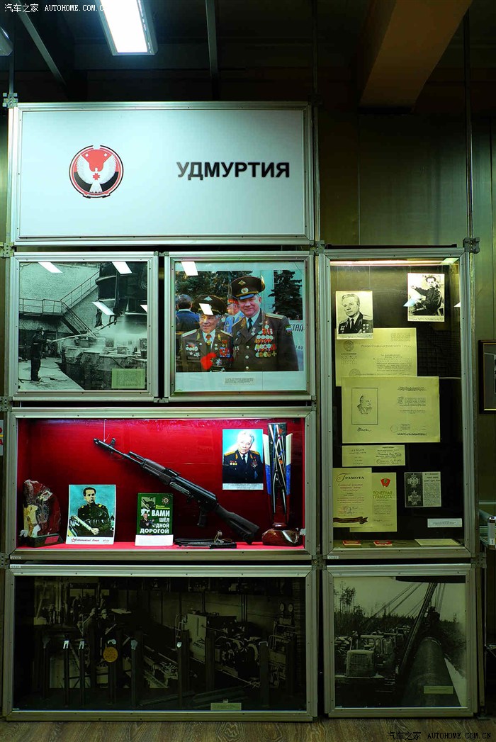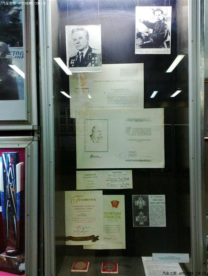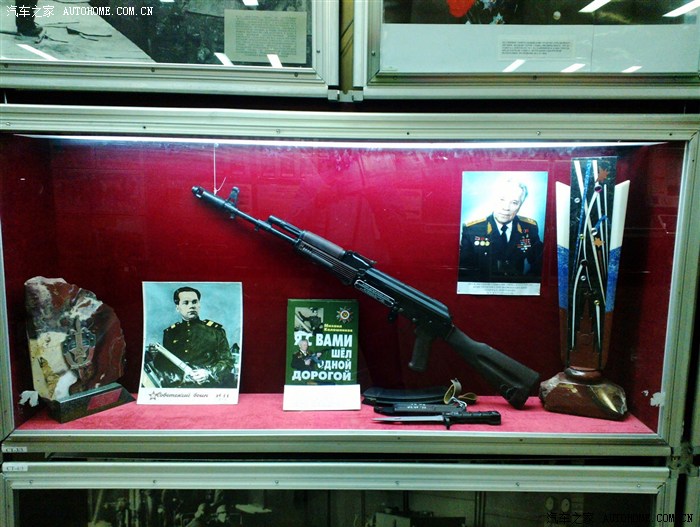 博物馆入口最醒目的位置就是卡拉什尼科夫的画像,而展厅里的专门个人介绍中除了朱可夫元帅就是这位殿堂级的枪械大师了。