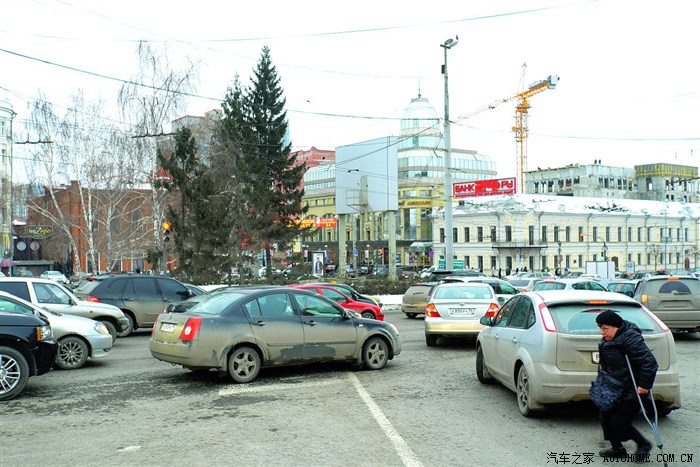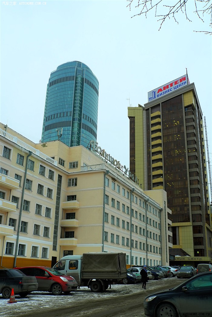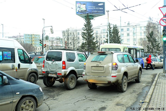 叶卡捷琳堡的晚高峰时间一样也是车流如潮,街上看见一辆暴改的吉姆尼和一辆中兴的SUV。