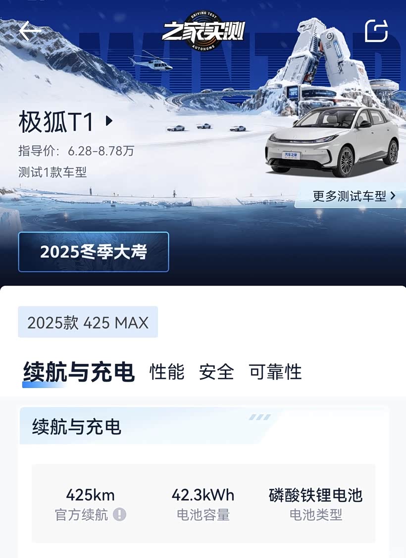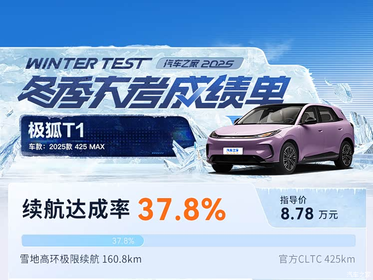 汽车之家2025冬季大考对极狐T1 2025款425 MAX的实测数据出炉了,也展现了这款8.78万元小型纯电车在极寒环境下的真实表现,其在空调制热、快充效率上有突出优势,但续航达成率、雪地主动安全表现存在明显短板,整体呈现“实用属性突出,极限性能一般”的特点。