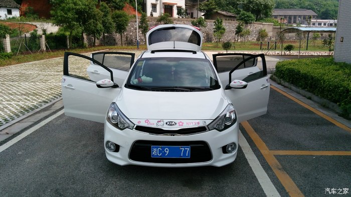 【提车篇】3月13日,某汽车电商负责帮我提车的帅哥李盼打电话给我说车到了,随时可以来提。蛮快的啊。于是选好天气请好假,17号正式提车。当日上午10点,和老婆一起驱车赶到长沙中南汽车世界某4S店(这里就不打广告了),门口已经停了一辆白色的K3S,估计是我订的那台。与李帅哥衔接上后,他开始陪我验车、交款,不过4S店的效率低了点,快12点发票才开出来,买保险上临时牌又要到下午了。中午在4S店的食堂就了个餐,伙食还不错。下午2点,准备买保险办临时牌照,结果这个4S店的办理点只有长安保险,没听说过,我所在的小县城也没有这个保险公司,考虑到理赔的问题果断放弃。又找熟人买了中国人寿的保险到车管所花了5元钱办了张半个月期限的临时牌照。万事OK,准备开车回家,因为是购买的裸车,4S店什么都没送,可谓净身出户。下午6点,新车K3S安全到达家中。