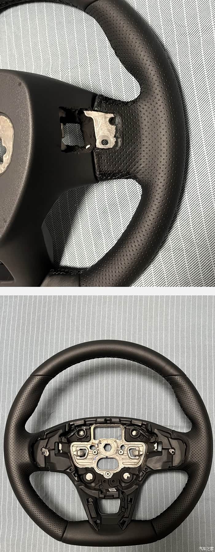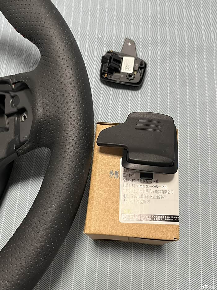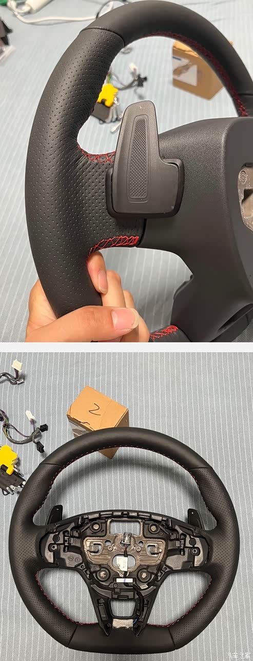 方向盘订货只有总成卖,价格太高了,所以就从配件贩子手里买的裸盘子。原厂全新拨片安排上。