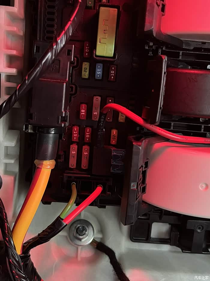 盘子和游丝齐了就准备开始补线,查电路图可以看到原厂是接到机舱保险丝供电的,并且是ACC电源,车内走到机舱有点麻烦,索性就接到车内保险丝了。