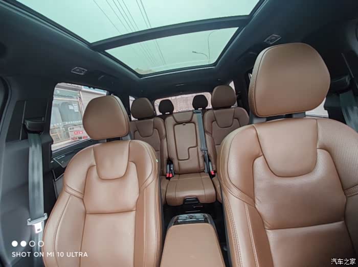 来看看第二排,第二排整体和S90轿车乘坐相比,因为是SUV,高度抬高了,所以乘坐的舒适感要好一些,而且它的靠背可以有一定角度倾斜,不像S90是固定角度的。再有就是后排中间的座位设计的很有意思,可以直接变成一个儿童座椅(可看下图的中间),不愧是为家庭安全着想的窝窝,很棒