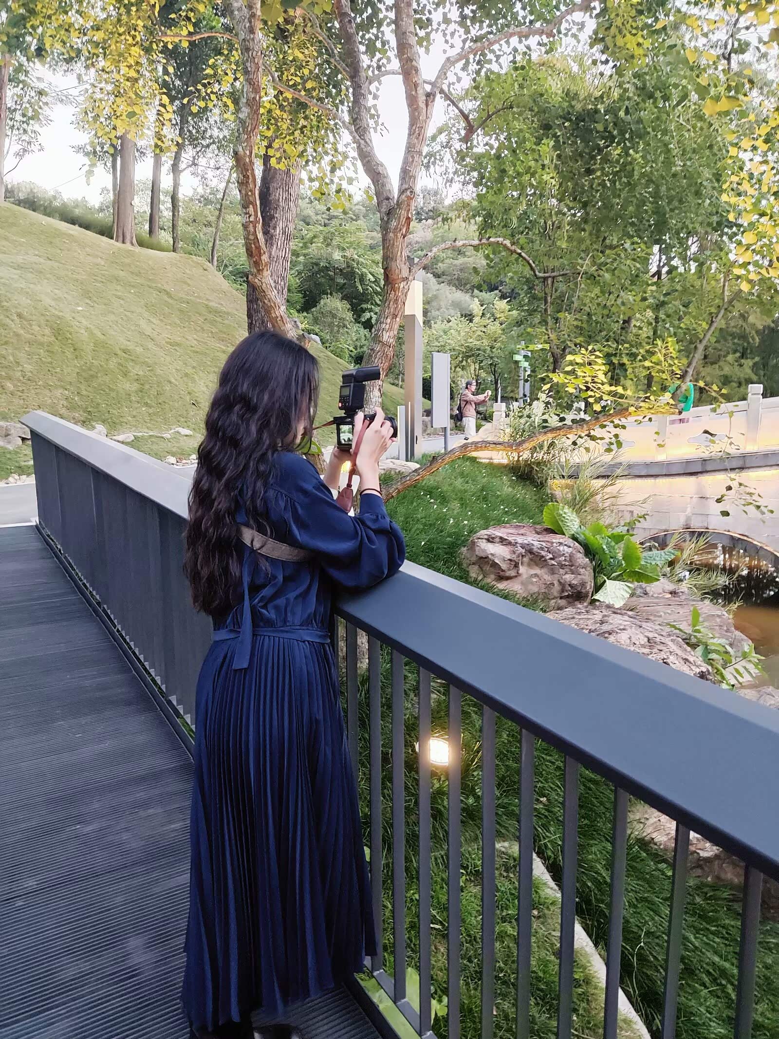 · 低机位仰拍:这可是显腿长、显气场的终极法宝!蹲下甚至趴下,用广角端微微仰拍,以蓝天或茂密的植物为背景,分分钟拍出腿长两米、气场全开的杂志封面感。