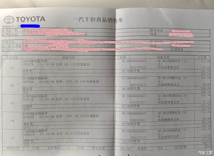 我一直按照手册来保养,每年或1万公里基础保养一次。由于丰田有个定保通的优惠,5次保养只需1380元,所以这些年都是4S店保养,每2-3年换个空气滤芯,每个大约90多元。空调滤芯就淘宝购买了。