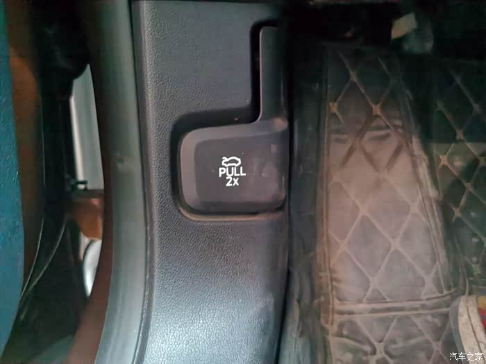 第一步是打开机盖在主驾驶位下方这个开关拨2下就可以成功打开机盖了