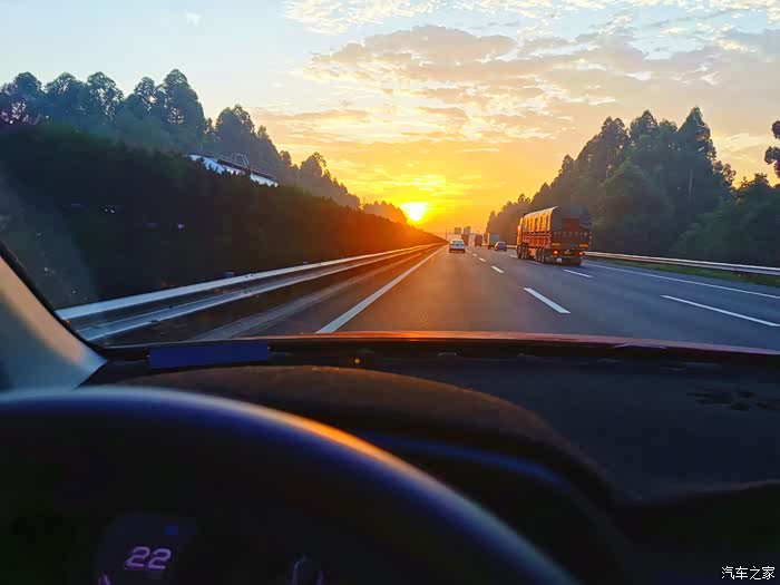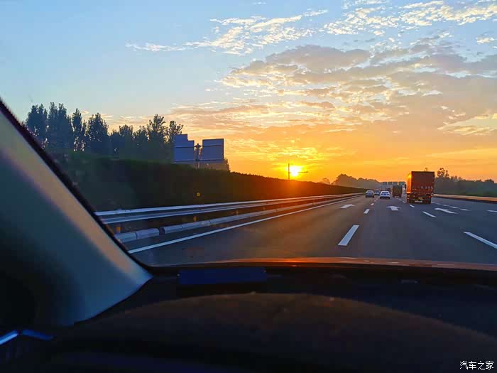 等到了同行的叔叔,准备上高速了,如此美丽的朝阳,必须合影一张