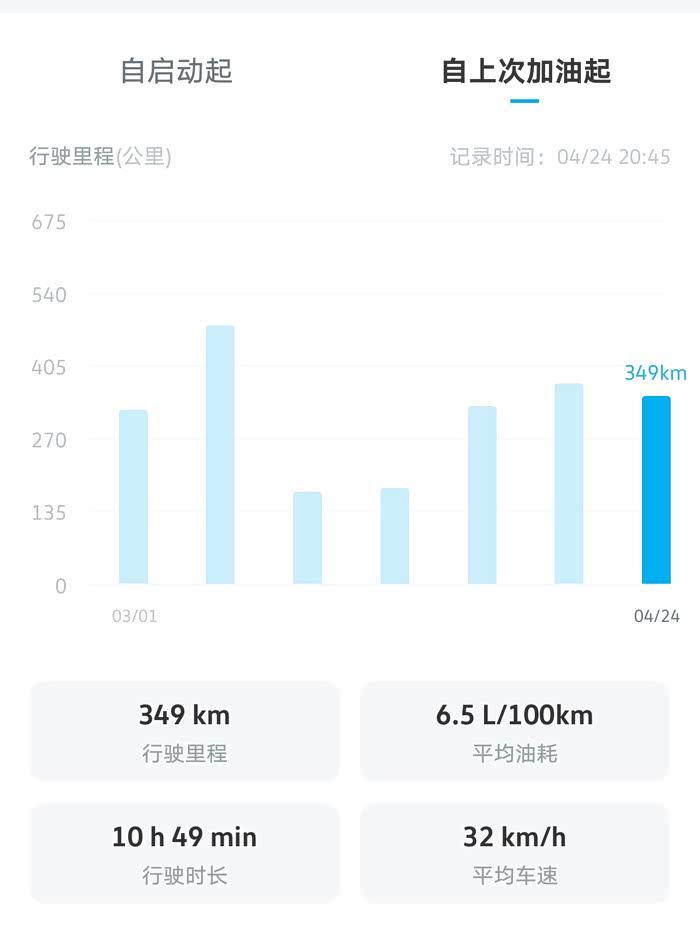 途岳300TSI发动机的油耗还是很低的,以我最近的“自上次加油起”的行程统计可以看出,行驶里程349公里,平均油耗仅为6.5L/100km,甚至在3月份还跑出了6.0L/100km的油耗。其中,在冬季的1月份,“自上次加油起”累计行驶里程342公里,最高油耗也仅为7.3L/100km!按照现在92号汽油的价格8.21元/升来算,最高的油耗花费也不过0.6元/公里,我对途岳的油耗表现还是比较满意的。