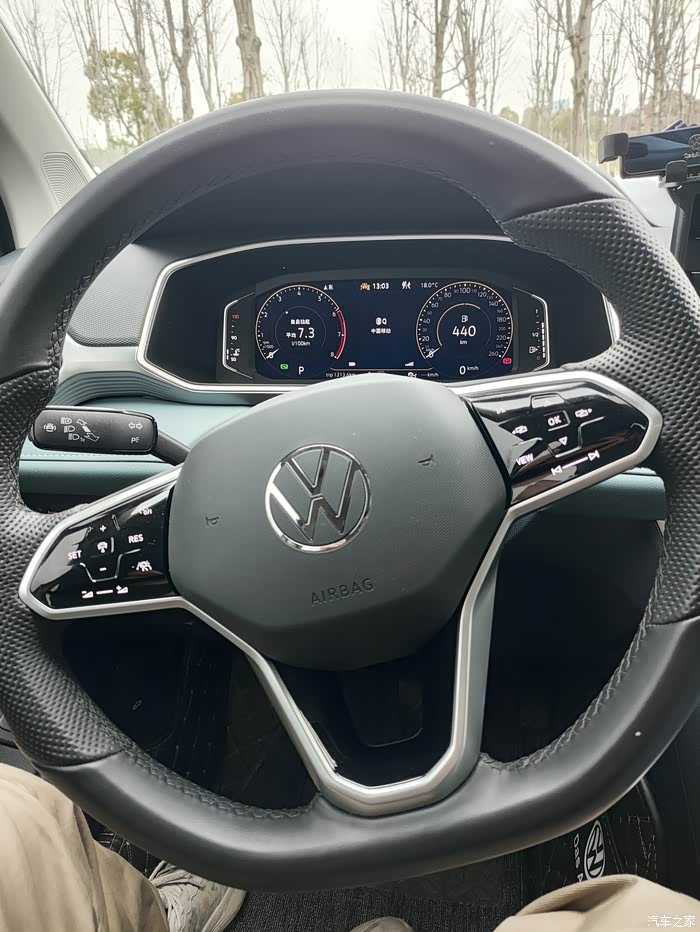 途岳的方向盘我觉得比较大,手握的直径也比较大,这很符合德系车的风格,相比于现在的国产车设计要显得更气派,国产车的方向盘设计都很小巧,使用起来感觉很不舒服,总觉得没有质感。同时“3点和9点”方向单独做了真皮打孔设计,手握起来不容易滑,摩擦阻力大,同时手感也比较柔软。