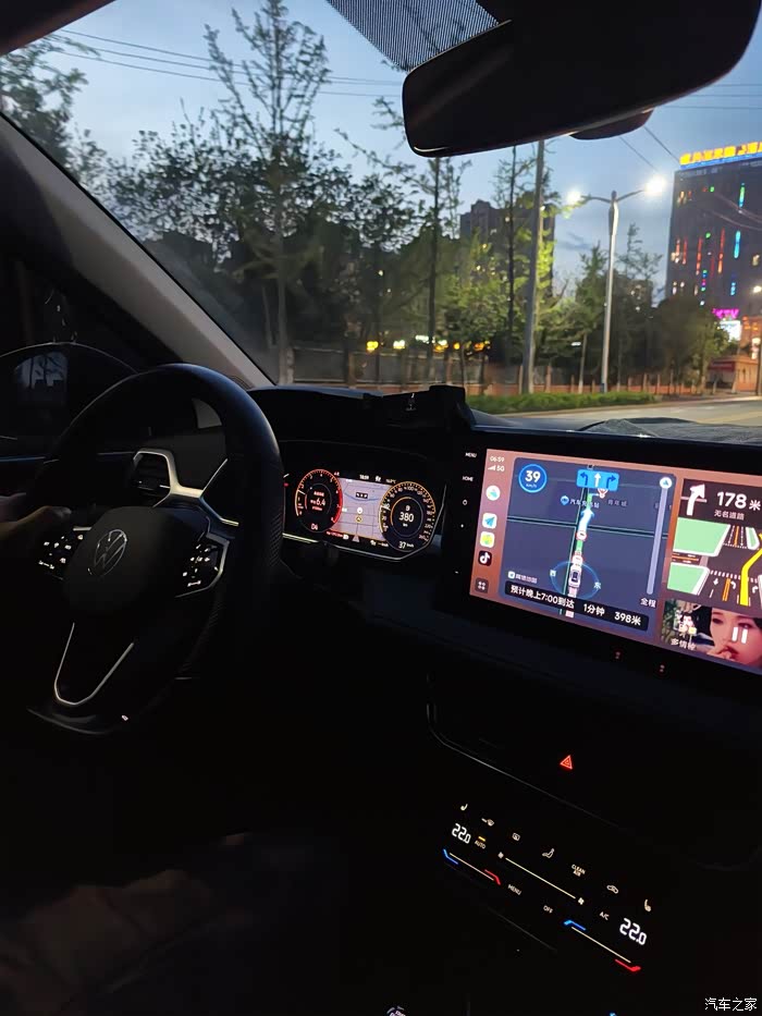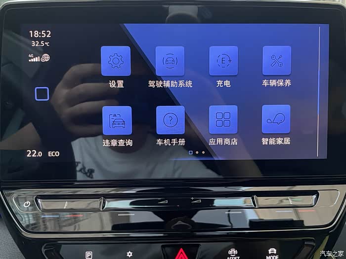 这次的车机设计可以说是满足我这个90后对于年轻化和时尚化的追求。竖屏对于德系车而言最早用在了奥迪豪华品牌上,这次大众也采用了奥迪的设计,12英寸的车机屏幕立在中控台上还是比较大的。车机界面对于我而言不够美观,背景是黑色显得太暗了,不够有活力;界面内的图标是白色,虽然比较看着比较简洁,但是我更喜欢大众ID.车型的图标设计,更饱满,有点像苹果手机的设计风格。