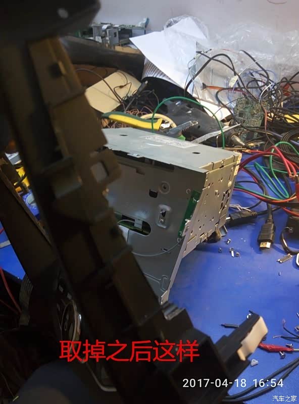 摄像头线插好;原车音频插头,原车电源插头与通用尾线音频电源插座对插好后就可以开机试机了,没问题熄火,把通用机尾线留在车上拿下通用机主机。