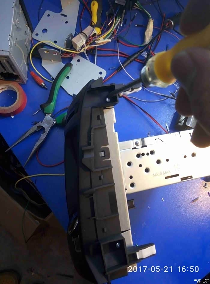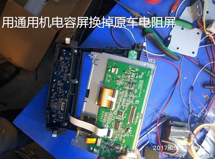 换好屏,插回排线与通用机主机连接。(屏和主机是分体的,只有一根排线连接。装机的时候一定要注意,不要暴力哦)。在通用机主机上上好原车固定件。就可以装车了。装中控与拆中控步骤相反。