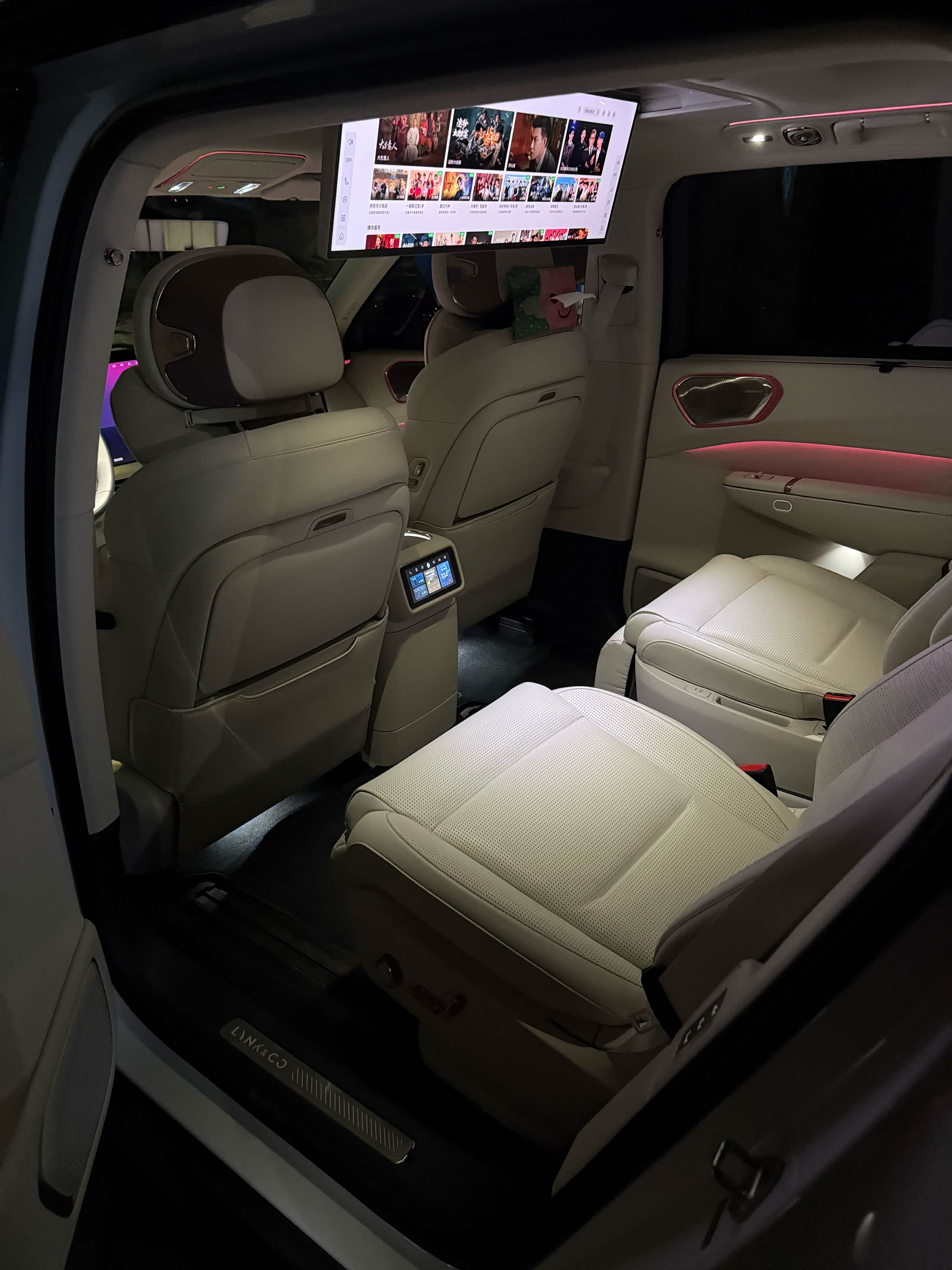 3️? 座椅:二排旋转座椅很新奇也很实用,还有六座平权,一二排座椅都有加热通风按摩功能,三排座椅加热和按摩。三排没有通风功能是因为领克900的第三排座椅为了保护第三排乘客,靠背里面加了钢板!防止追尾后车尾有尖锐物刺进!这一点很贴心很安全很领克!