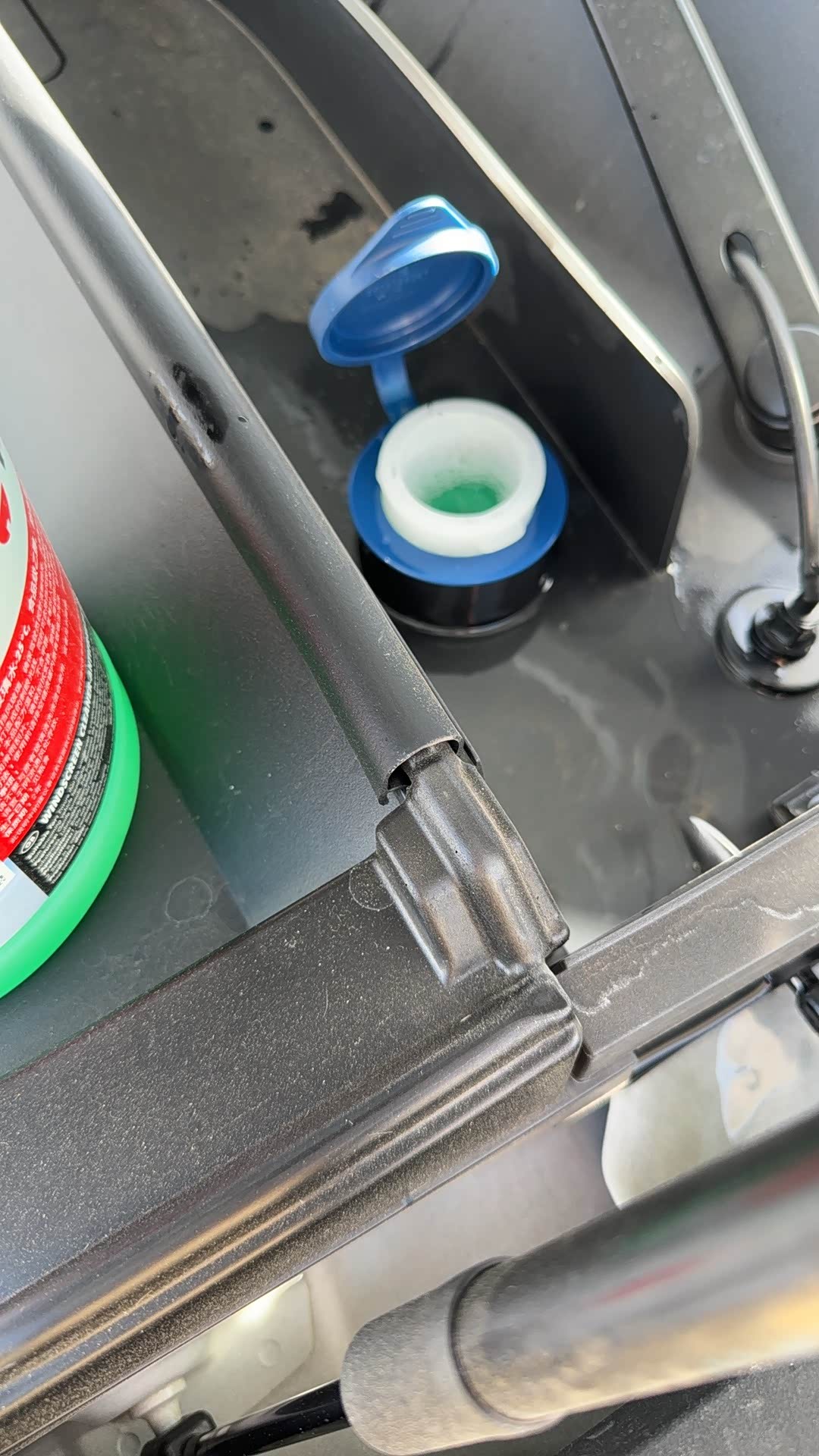 一、加玻璃水的时候一定要慢点倒,玻璃水口里面有个过滤网,倒快了会溢出来!北方车友冬天尽量换-25°或更低的玻璃水!