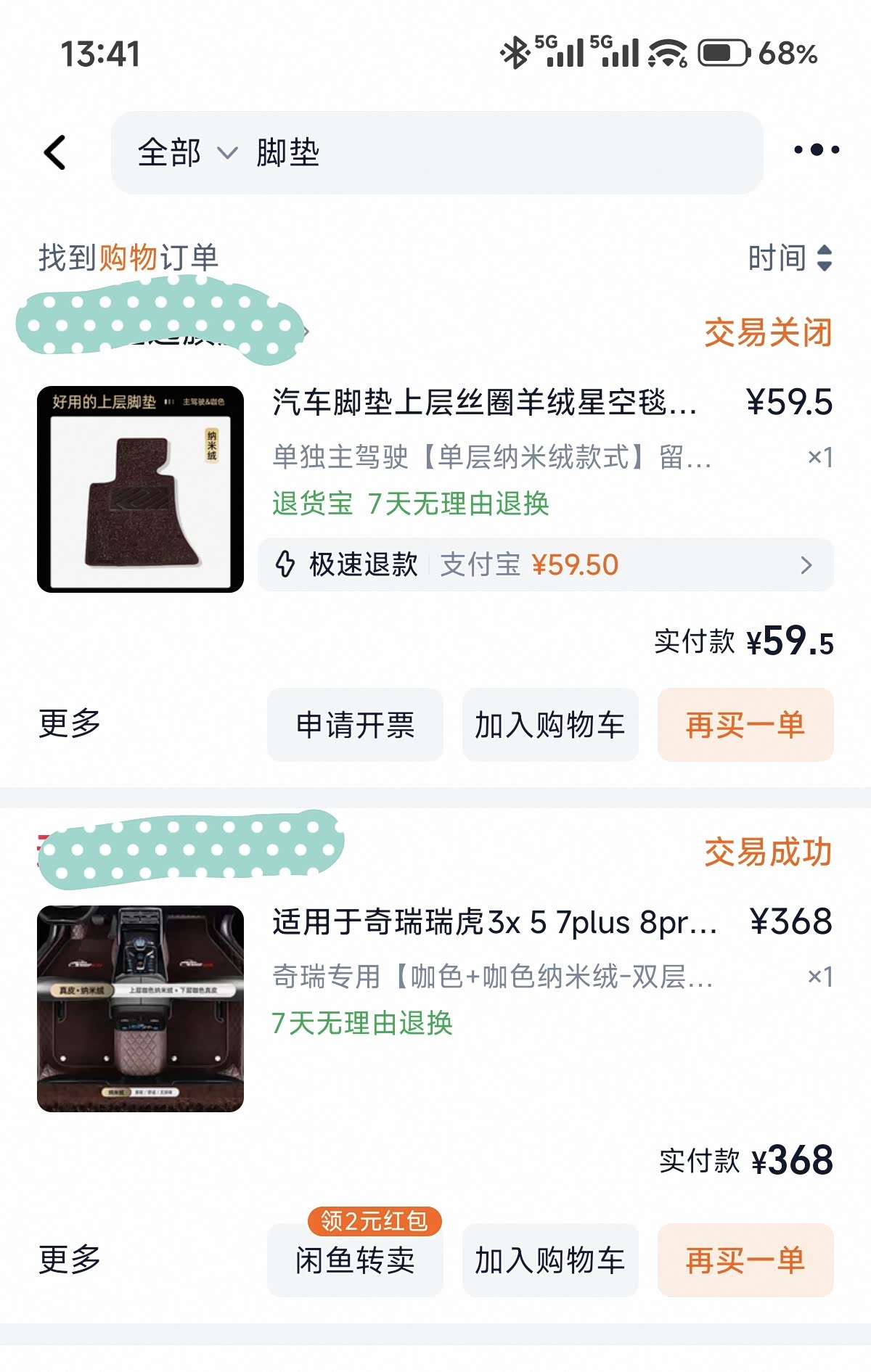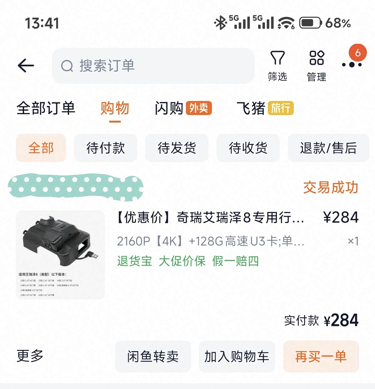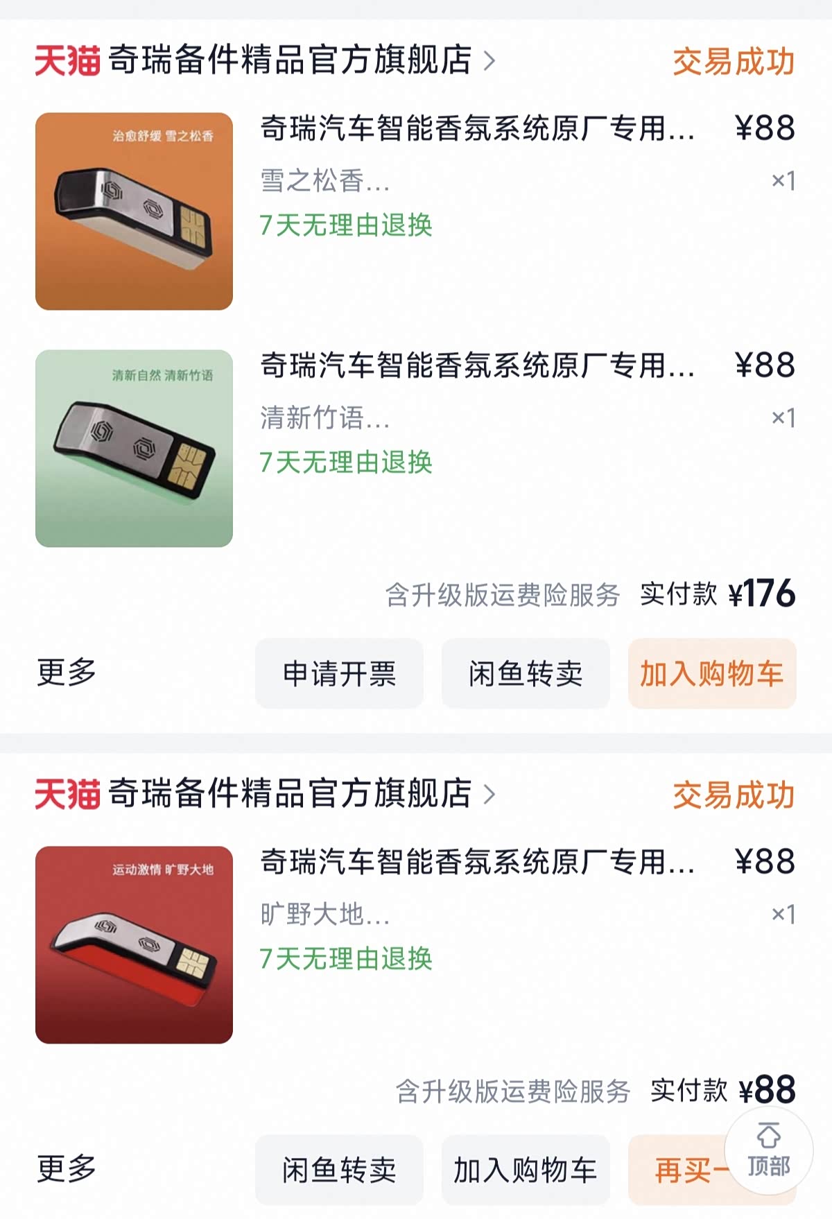 目前车辆单独购买了脚垫,行车记录仪香薰这些,其他的没有进行过购买