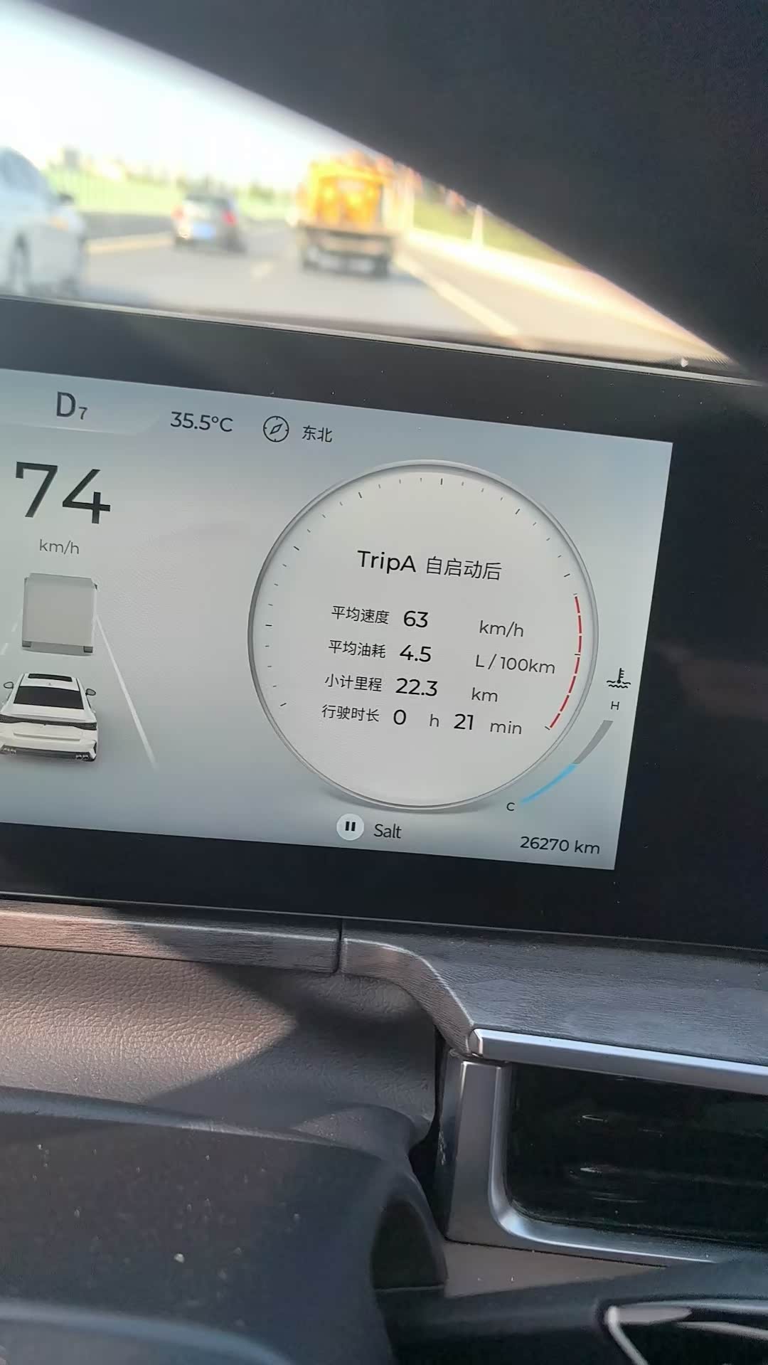 目前高速油耗在5.5个左右,因为我们这边有山,回家的高速都是上坡或者下坡的路况,市区高架的油耗基本都是4.5左右,基本在80左右车速的情况