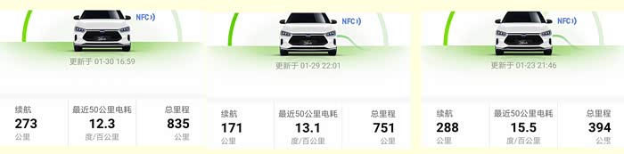 目前车子开了一千多公里,不开空调百公里电耗大概是12度电,开空调的时候,大概是十五六度电的样子,看我的软件截图。
