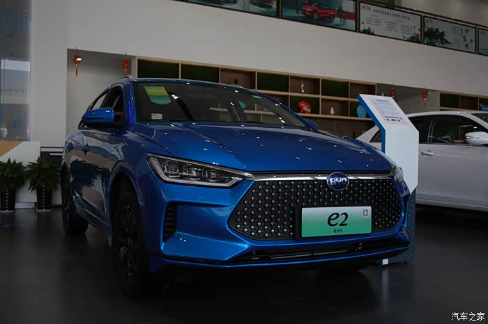 后来就想买个小点的SUV,对于买车这事儿,女人根本不care动力之类的性能,好看就完了。感觉长安的CS35P不错,就去了4S店看车,确实也不错,只是没有试驾车。然后就去了隔壁的比亚迪,进店就看到了这辆E2,销售帅哥小盛和叶经理很热心,试驾了一圈,感觉不错,而且听销售说,这车每公里折合下来也就不到一毛钱一公里,老婆这种平时过日子爱精打细算的,一下子就心动了,然后就决定买了。