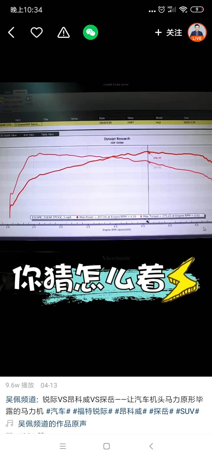 那么福特锐际实测机头马力能到多少呢?车探还没测,不过我在西瓜视频里面找到了锐际拉马力机的视频,叫吴佩频道。