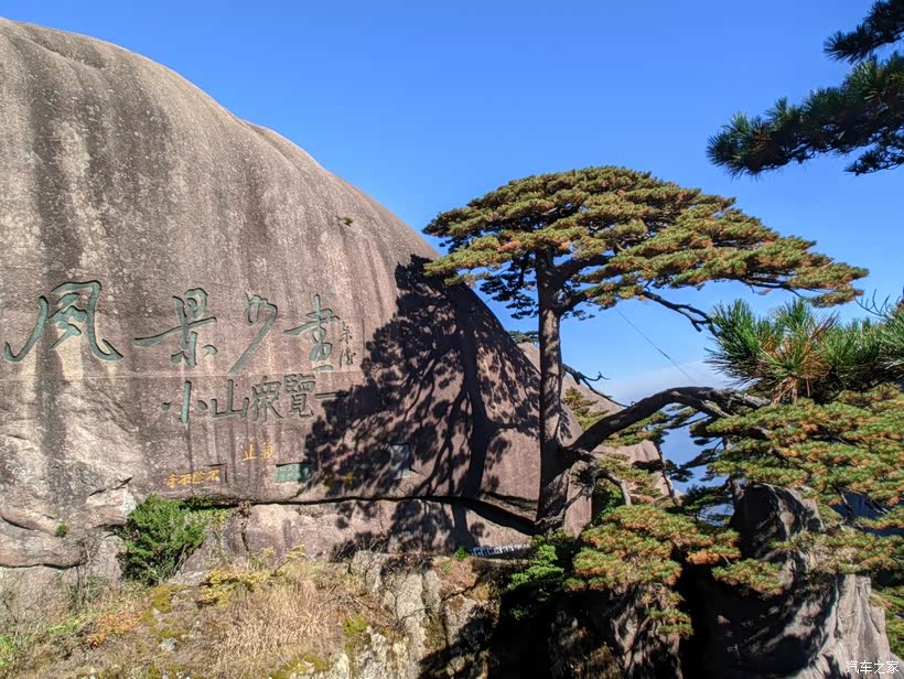 走过始信峰,看过探海松、黑虎松,就看到著名的“妙笔生花”景观。这个景观,我们都要找一阵子才发现,人家小朋友一下就看出来,果然语文课本学的好。