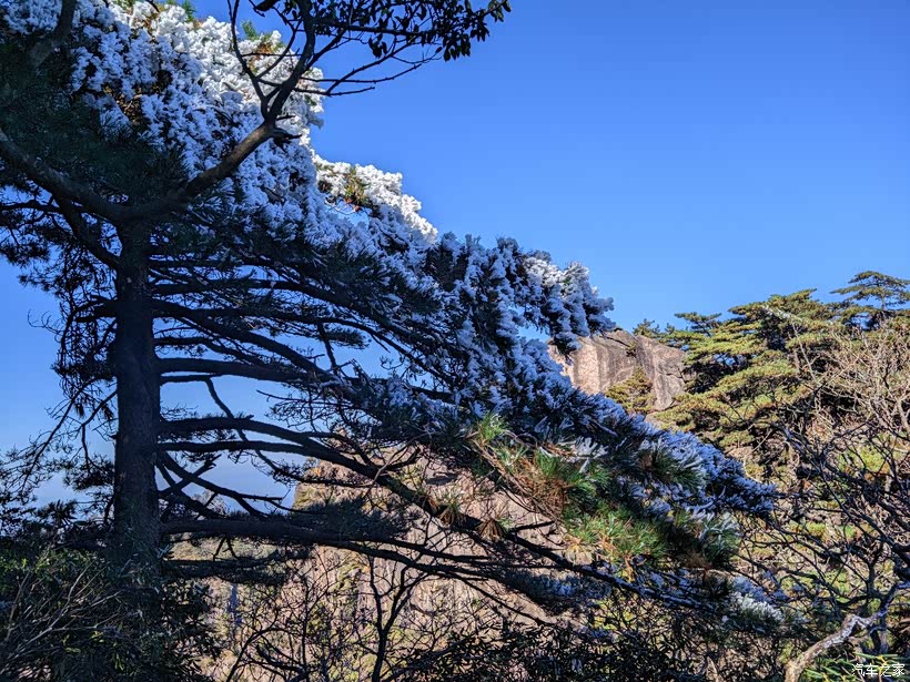 前天黄山下雪,今天的雪还有很多没来得及融化,算是看到了雾凇的尾巴。