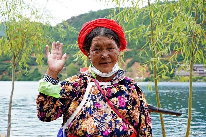船家是一位纳西族的老奶奶,她热情的向我们挥手打招呼,邀请我们坐她的船在湖中观光。