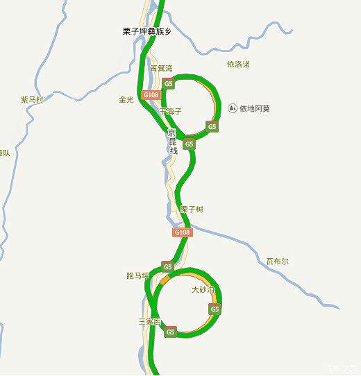 还记得在新疆第一次走果子沟大桥那条螺旋隧道的确是震撼到我们,这次在雅西高速上行驶以为也是和果子沟大桥那般的螺旋隧道,靠近了从导航中发现原来是充分利用地理位置设计成的双螺旋隧道。