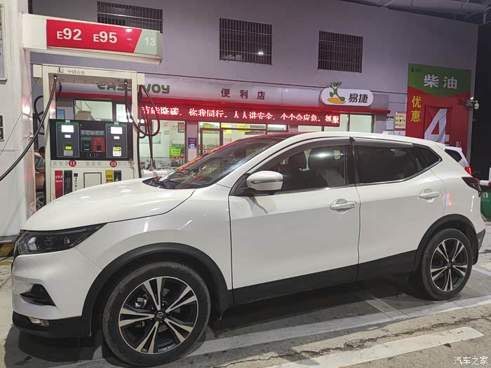下午四点多出发为我的小白加满油,让续航更加有保证!2.0动力的逍客我选择依然是95的油品,长途我感觉动力爆发性更适合我的逍客…