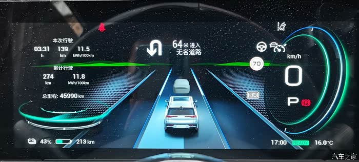 下午返程时间相应推迟了一点。下午五点到家。全天行使274公里,剩余续航213公里,274+213=487,百公里电耗11.8℃,行使274公里,仅仅多消耗13公里。