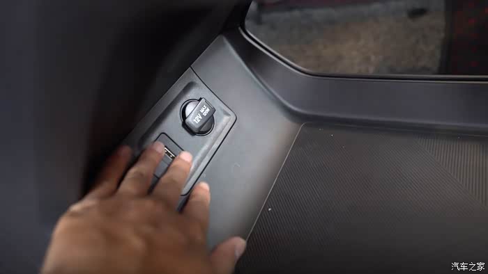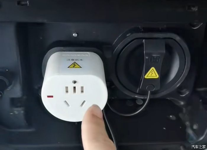 揭开后备厢地板,还有好大一层储物格。随车还配了一个放电插座。