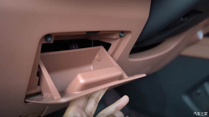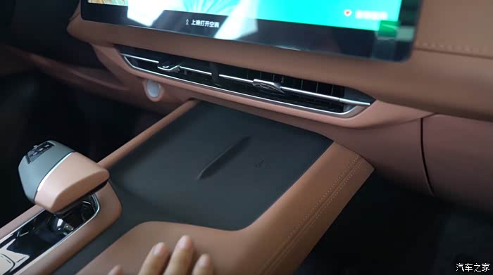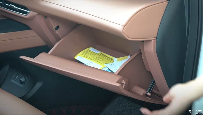 深邃扶手箱,里面有个冷热可控的空调出风口,冷藏几瓶饮料还是可以的。