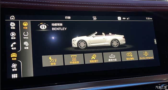 包含以下 主动式车道保持系统(宾利的车道保持辅助系统可以在行使中提供轻度转向辅助让车一直保持在车道中间)、适应性巡航控制功能(ACC)、车流辅助(就是堵车时拥睹辅助)、抬头显示屏(好像这个是标配吧)、宾利安全防护加成系统(在操作界面看不出来有什么区别)、夜视摄像头(温度小于28度才能使用,在广东其实意义不大)。