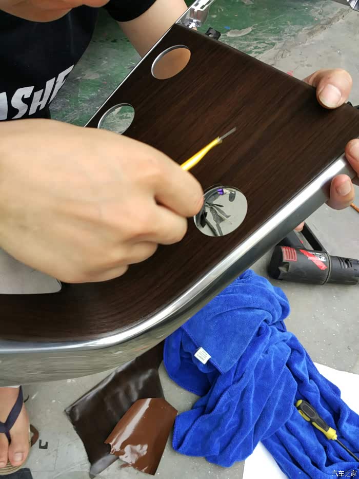 有了车友探路,顿时来个兴趣,虽然对这位车友选择的木纹颜色不敢恭维,手工技术不甚熟练,但创意不错。这年头,不就创意最挣(sheng)钱么!