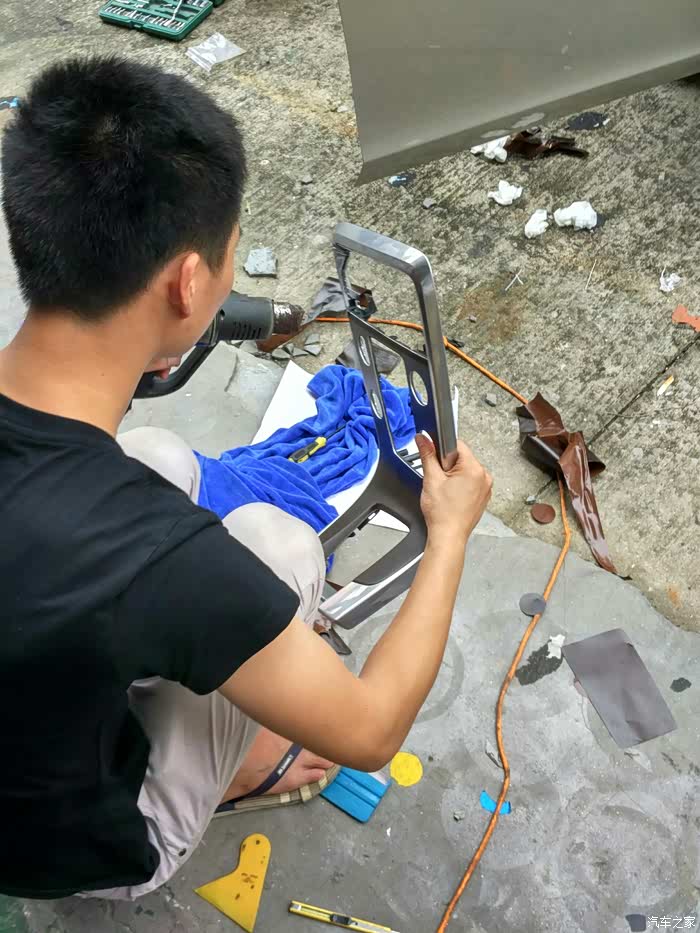 贴纸到手了,车还没提。等提到车,一系列的手续繁琐耽误了时间,加上原车的面板实车比较耐看精致,小城市一时又找不到会贴的师傅,就把这事搁置了,直到前几天加了本市的一个车友群,无意中问了一句,果真高手在民间,一家装饰行小老板说自己能贴,还发了自己车的图片给我,顿时这颗心又躁动起来了。