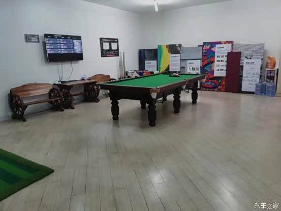 看了一会,有点累了,就上2楼客休区休息一下,一上去桌球旁边就有个看板,可以看到车辆的维修进度,还有摄像头可以看到自己的车辆。