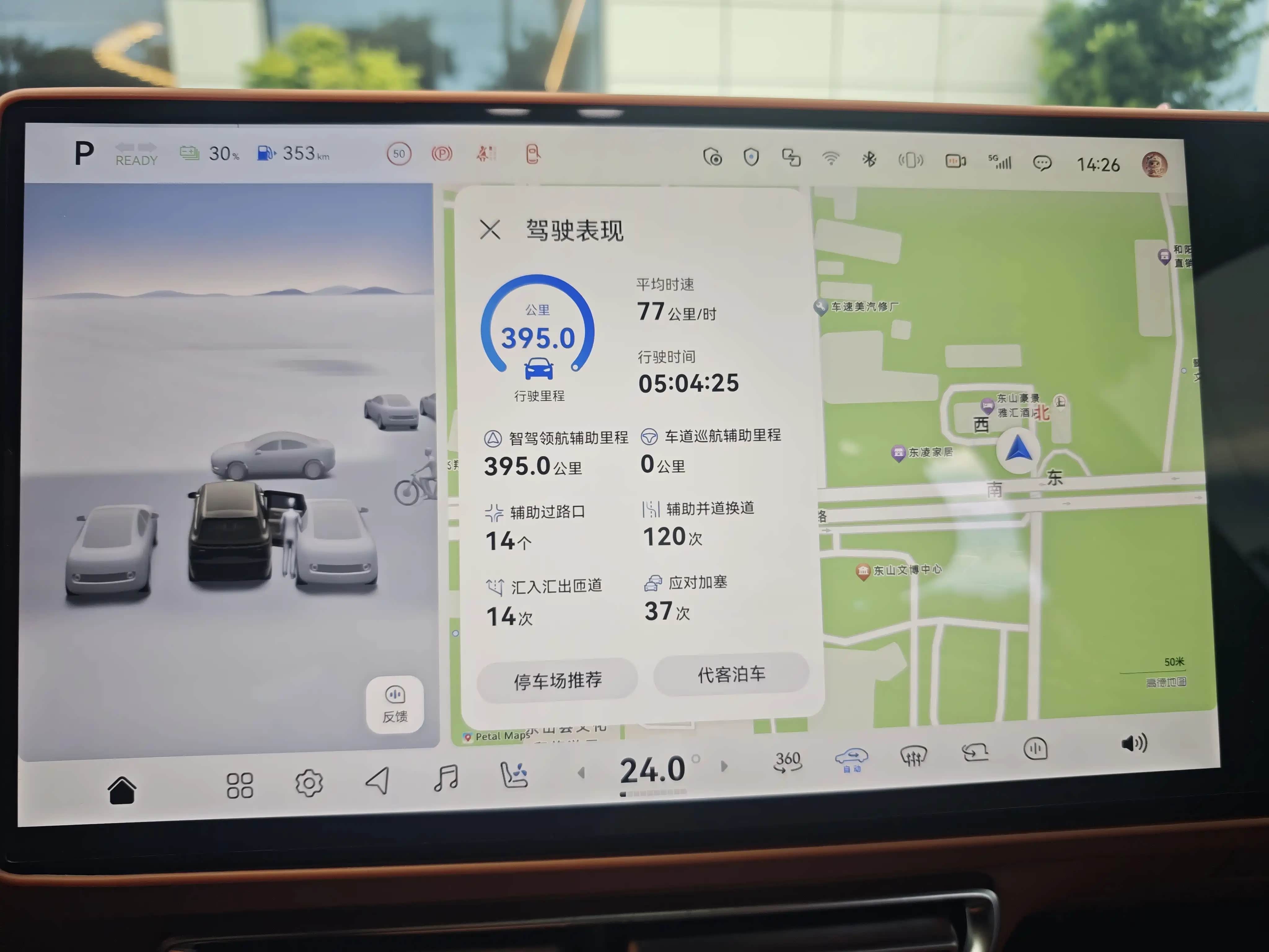 驶上高速后,我一键开启华为乾崑智驾ADS4系统,同时深踩电门,S09搭载的双电机四驱系统瞬间爆发动力,推背感很线性。超车时踩下踏板就能获得即时响应,完全没有新能源车常见的动力延迟。全程不用我多操心,智驾系统自动完成变道、超车和上下匝道,遇到突然出现的施工路段时,还能提前500米预判到情况,平稳完成车道切换;过弯时底盘悬挂的支撑性很到位,没有明显侧倾,家人坐在后排也不会觉得晃。更惊喜的是能耗表现,出发时表显续航620公里(CLTC工况),全程高速平均时速110公里,还开着空调和娱乐系统,到达目的地后剩余电量仍有32%,百公里电耗仅16.8kWh,这样的续航达成率在同级别中真的很能打,完全不用为长途补能焦虑。