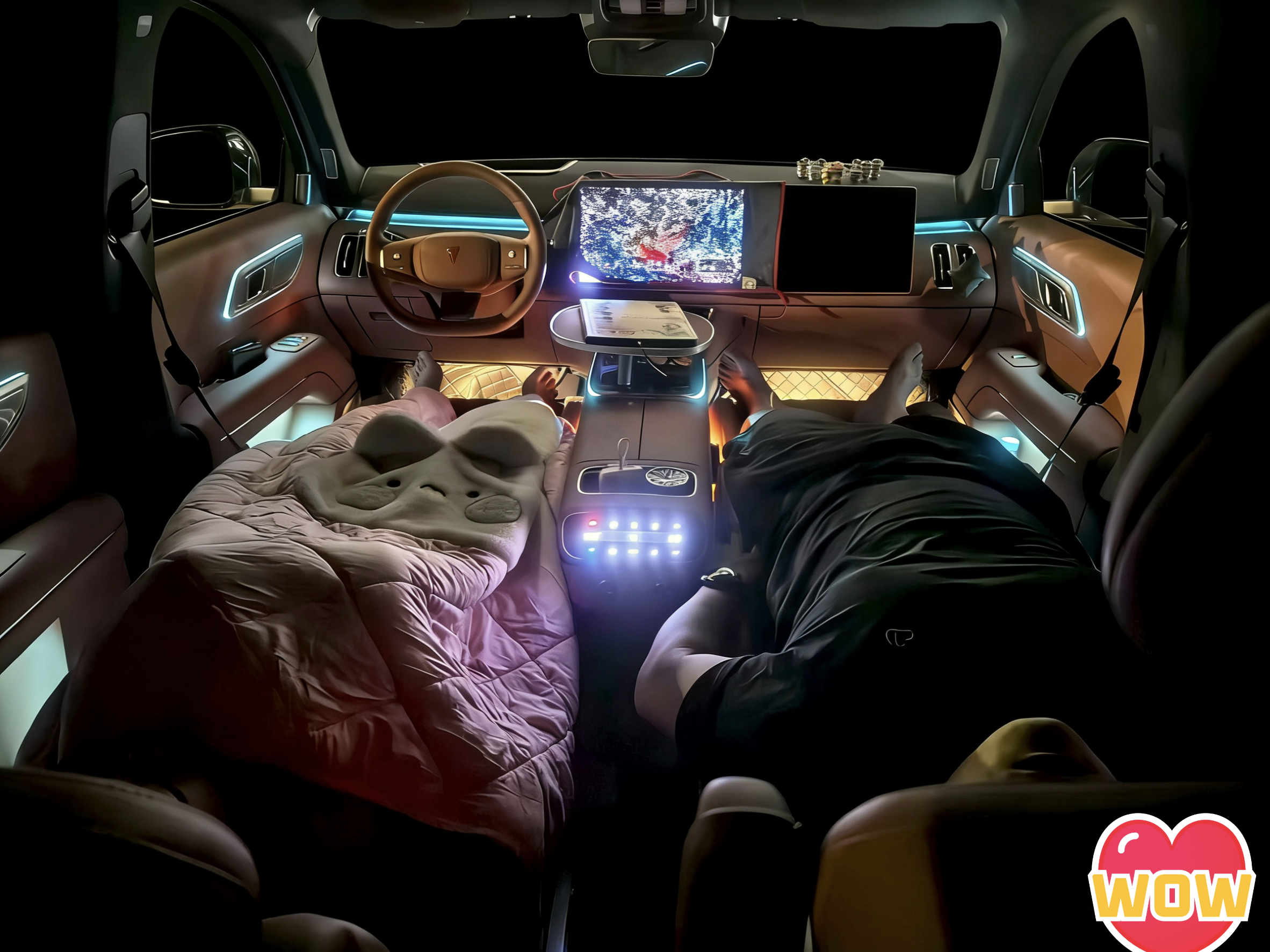 夜深了,山里静得只剩下虫鸣,关掉投影后,我们仰头透过全景天幕望向夜空——银河清晰得仿佛触手可及,漫天星辰密密麻麻缀在黑丝绒般的天幕上,偶尔还有流星倏忽划过,娃趴在窗边瞪大了眼睛,连呼吸都放轻了,这样的星空盛宴,是城市里永远看不到的浪漫。倦意袭来时,我们把前排座椅完全放倒,与后排连成一张平整的“大床”,铺上薄床垫,空间宽敞得足够一家三口舒展身体,再盖上毯子,伴着山间的清风,一夜睡得格外踏实。