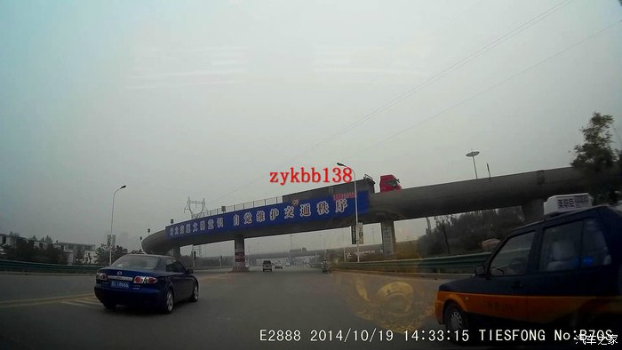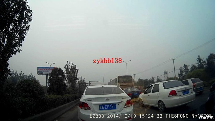 从车子前面看车子里面记录仪的效果
