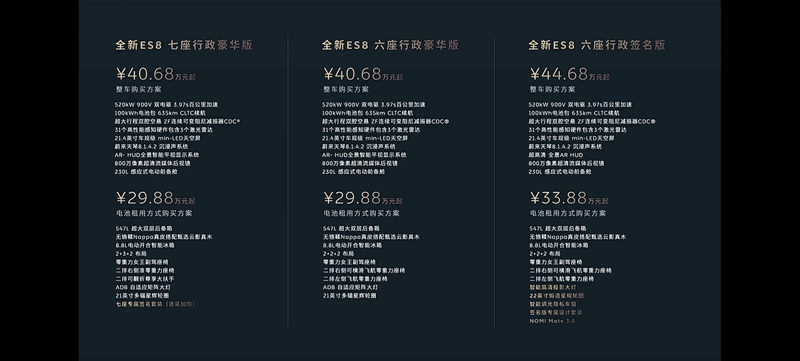 还有个想法,这次的es8性价比肯定是非常高了,但是仅限于租电。如果买断电池的话,现在动手还是再看看es9?